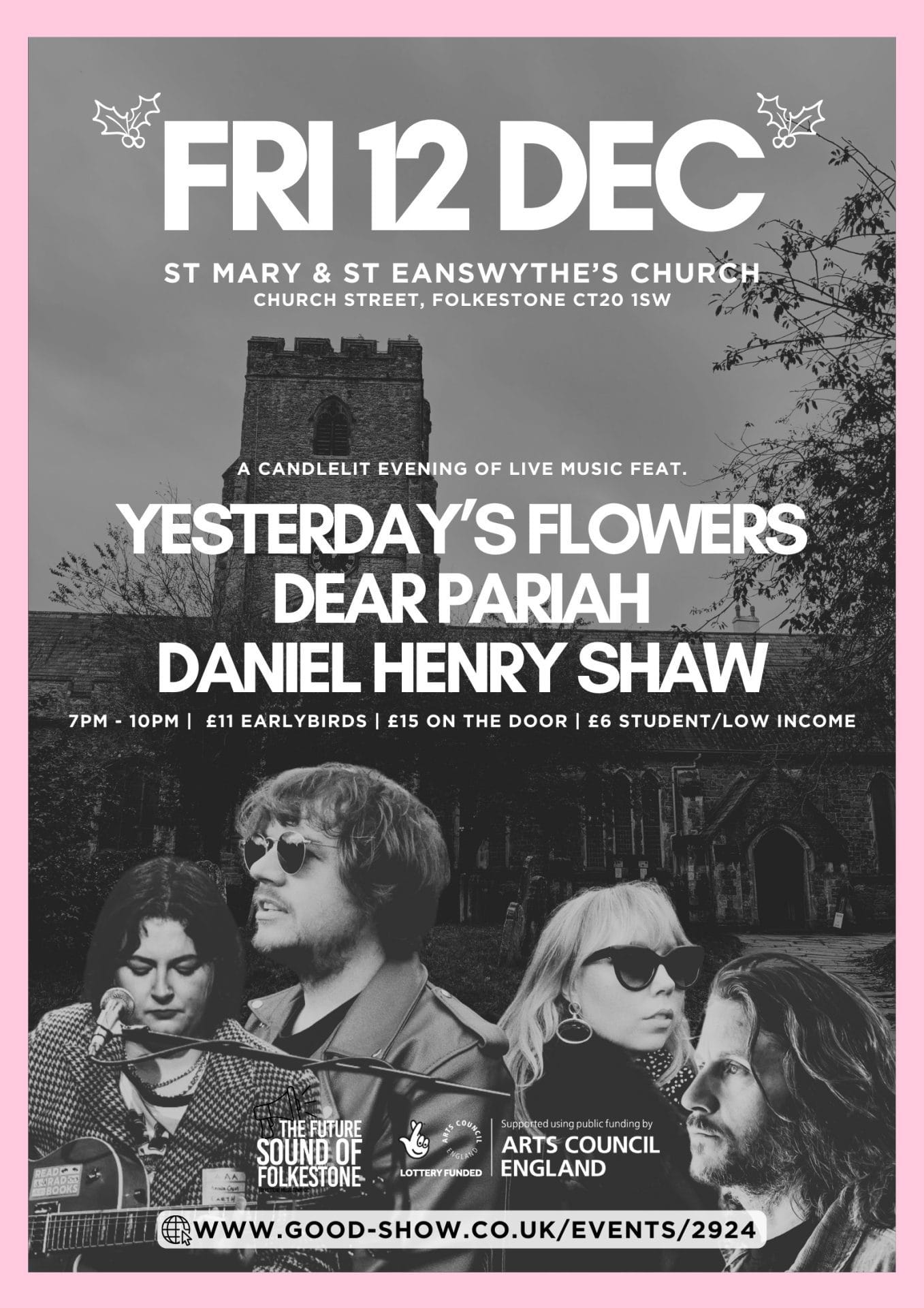 Yesterday’s Flowers proudly present their second annual Christmas show from the atmospheric surroundings of St Mary and St Eanswythe’s Church, Folkestone.