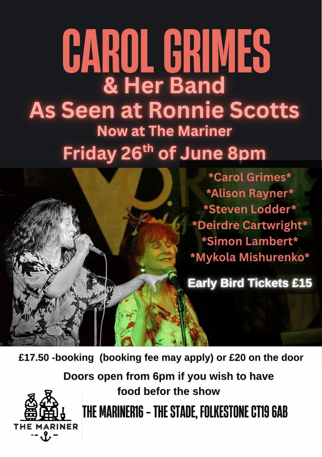 A very special evening with the legendary Carol Grimes and her outstanding band, bringing world-class live music to Folkestone.