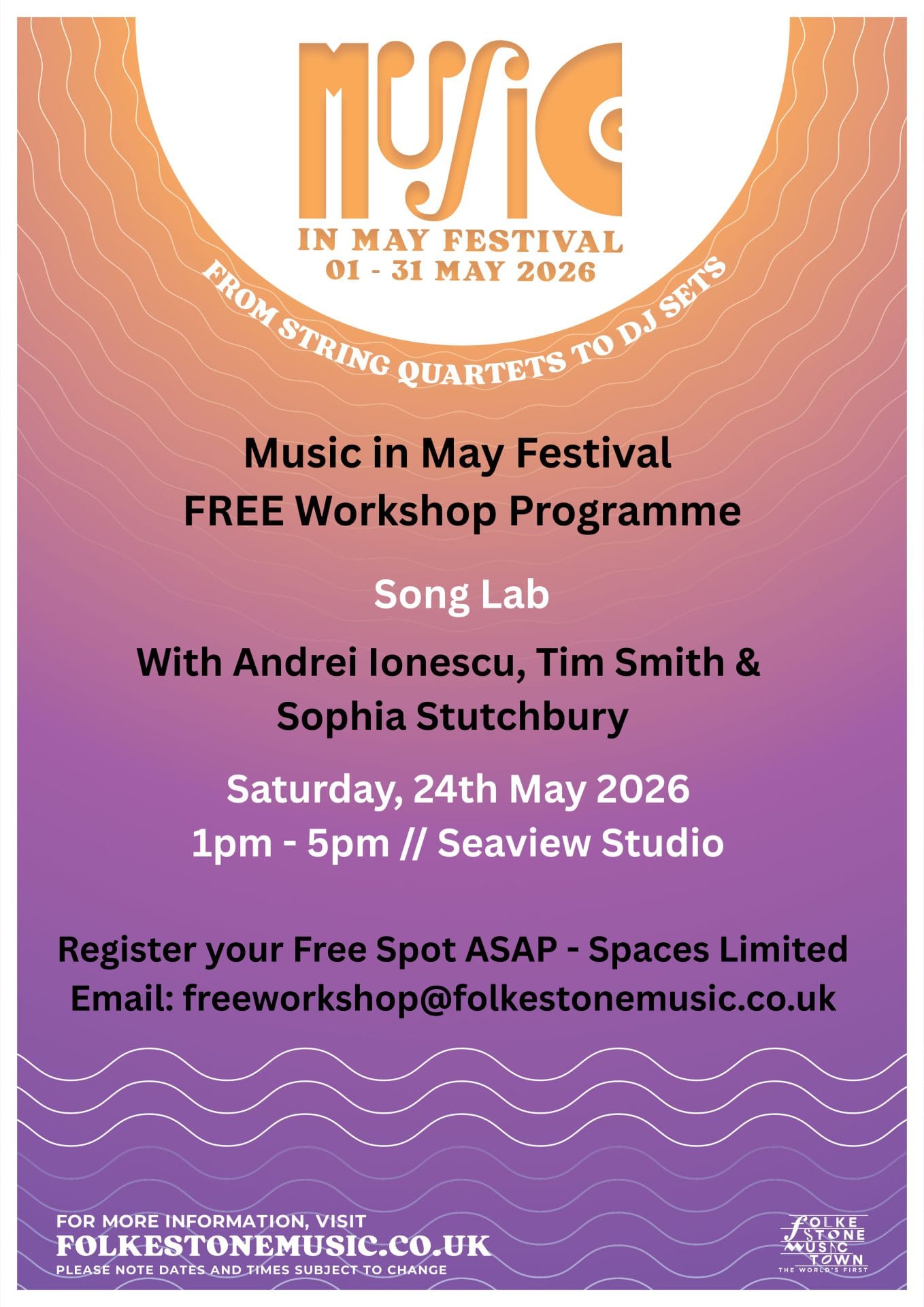 Spaces are limited to keep the workshop focused and interactive—so if you’ve got a song waiting to grow, this is your chance.