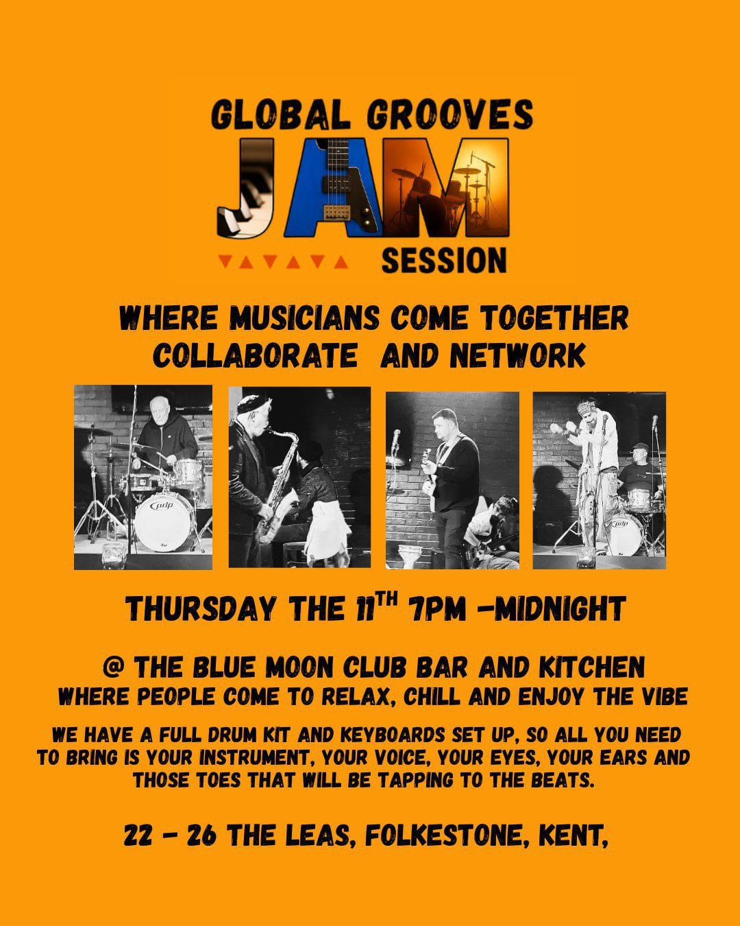 We have a full drum kit and keyboards set up, so all you need to bring is your instrument, your voice, your eyes, your ears and those toes that will be tapping to the beats.