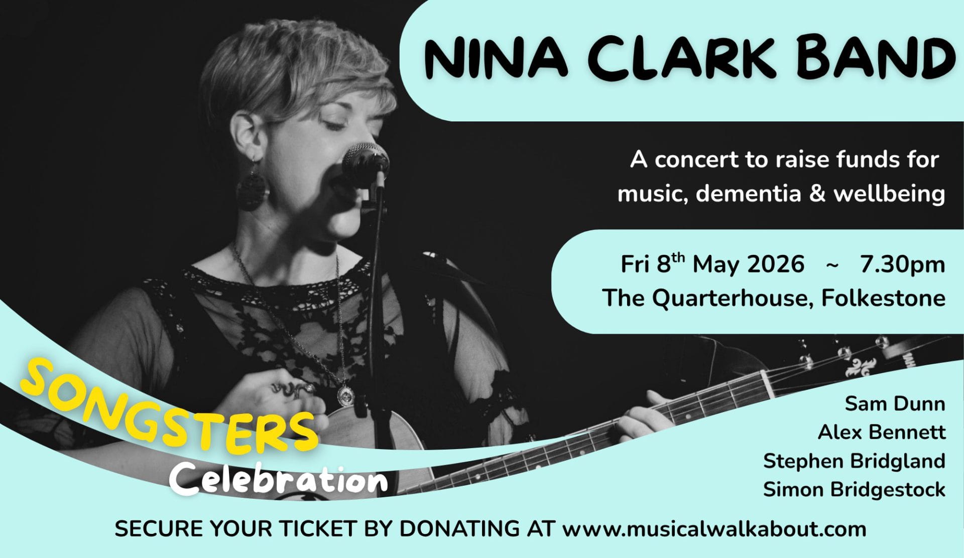 This is a special event raising funds for Musical Walkabout CIC’s ‘Songsters Across Kent’ project. Aiming to bring 60 music sessions to 200 people living with dementia around our county, buying a ticket to this concert directly helps the project foster wellbeing, community and meaningful moments through singing.