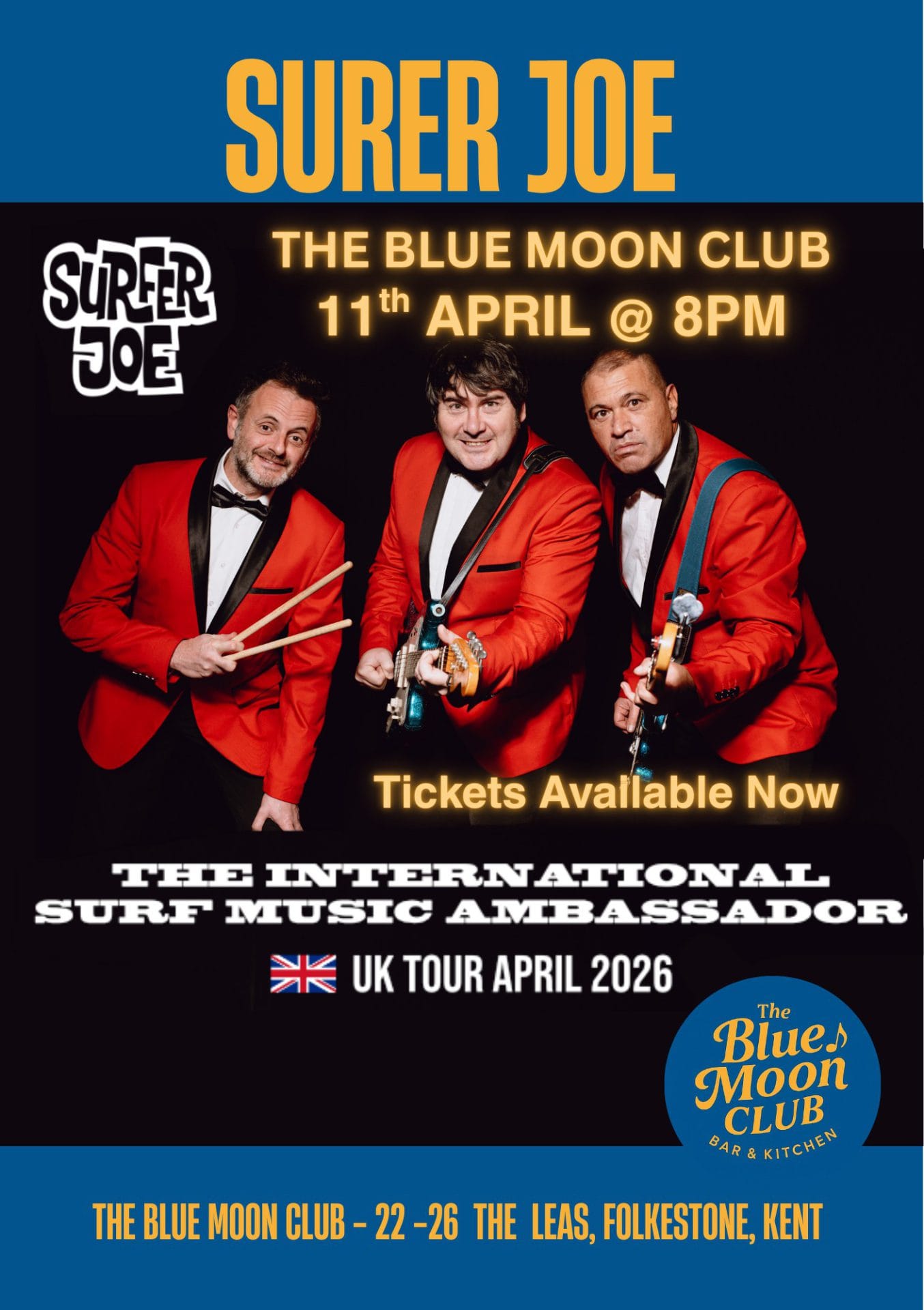 One night only in Folkestone. Internationally touring surf musician Surfer Joe brings his high-energy live show to The Blue Moon Club as part of his UK tour.