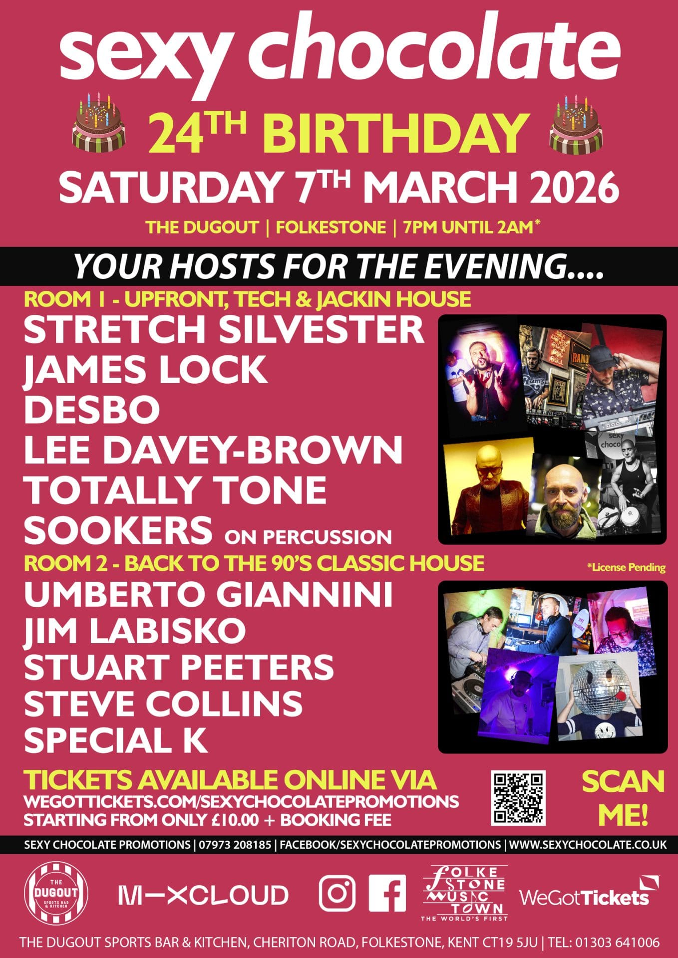 Here’s the line-up with have so far for Saturday 7th March 2026 at The Dugout, Folkestone, 7pm until 2am… (🥳2am License Approved 🥳)