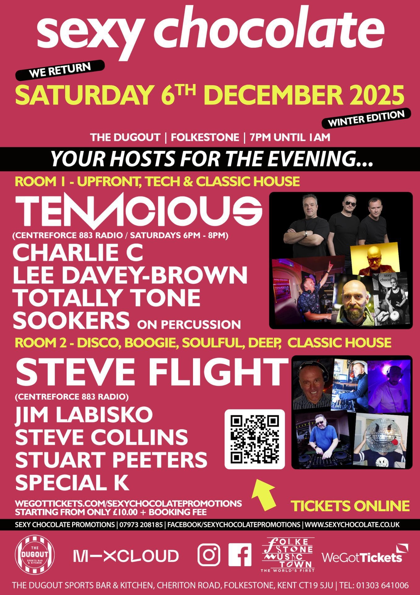 We return for our winter party at The Dugout Sports Bar and Kitchen in Folkestone with the welcome return of Centreforce 883 Radio’s; Tenacious headlining room 1 and introducing someone many of you may know from back in the days of Juicy Tunes and many more; Steve Flight from Centreforce 883 Radio too headlining room 2.