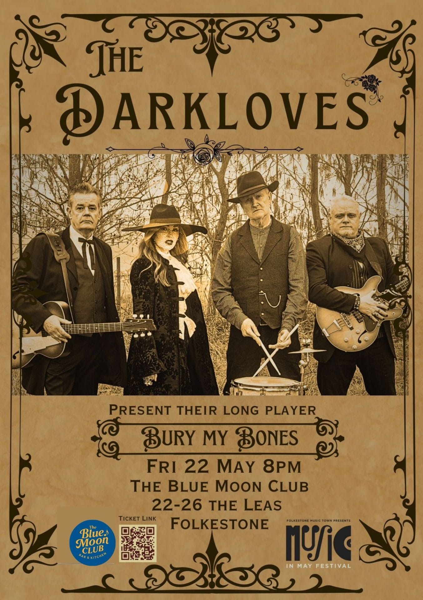 As part of Folkestone Music in May, The Darkloves make their debut appearance at The Blue Moon Club with the launch of their new album Bury My Bones.