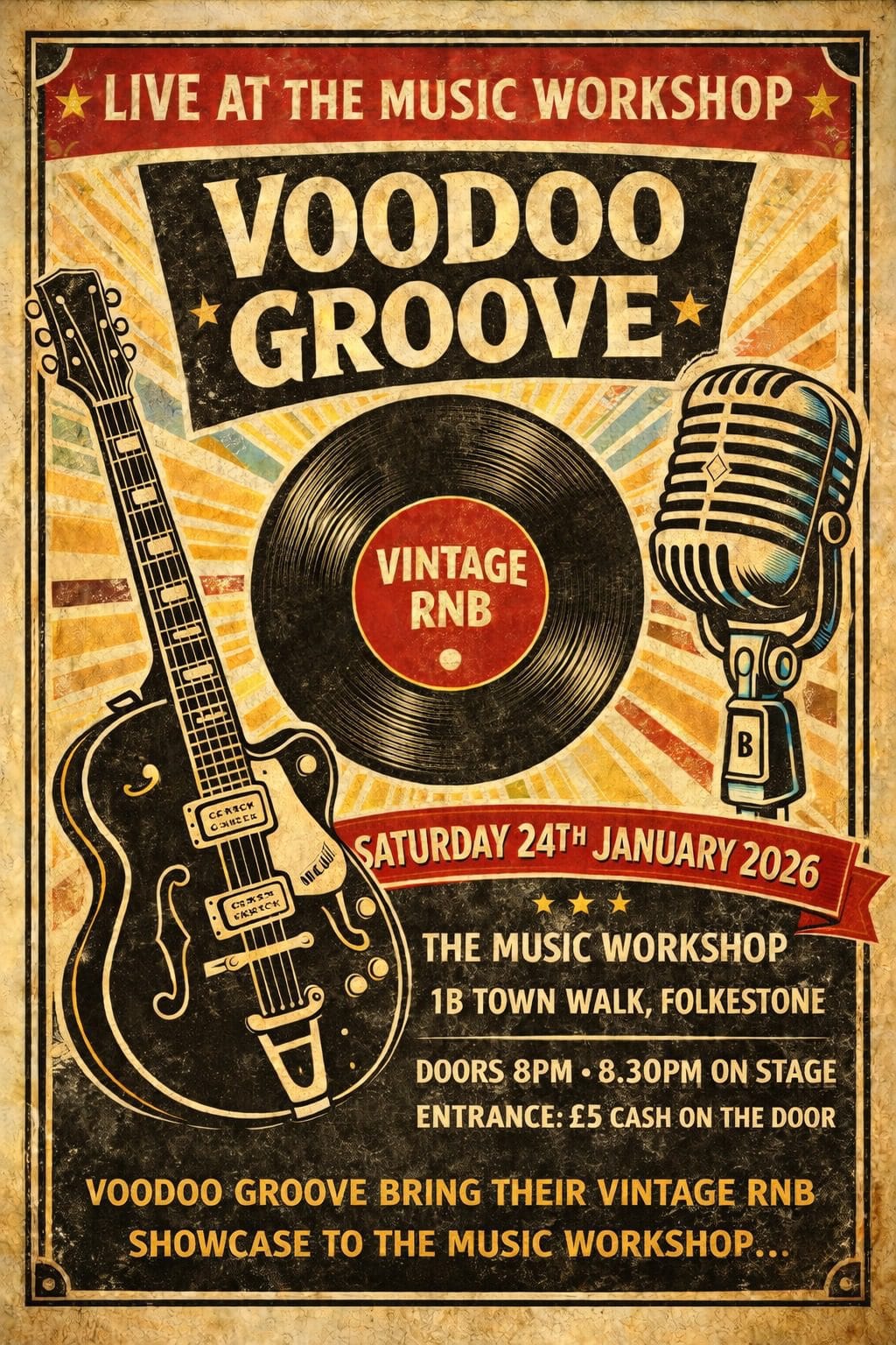VoodooGroove , an awesome old school RnB outfit.. bring their uptempo set of nailed on classics that crowds instantly love to the equally awesome Music workshop