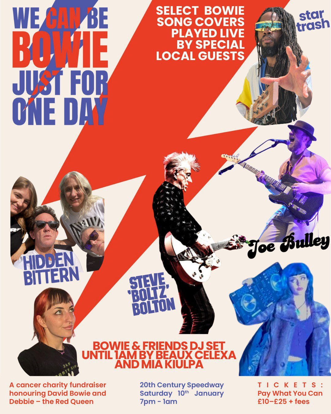 This special fundraiser marks 10 years since David Bowie’s passing, and also honours Debbie “The Red Queen”, Speedway co-founder and a true local legend who passed away 2 years ago from cancer, but whose spirit still lives in the venue. We’re gathering to sing, dance, dress up (if you fancy it), and raise as much money as possible for a family run small charity, the Caron Keating Foundation, chosen by Speedway.
