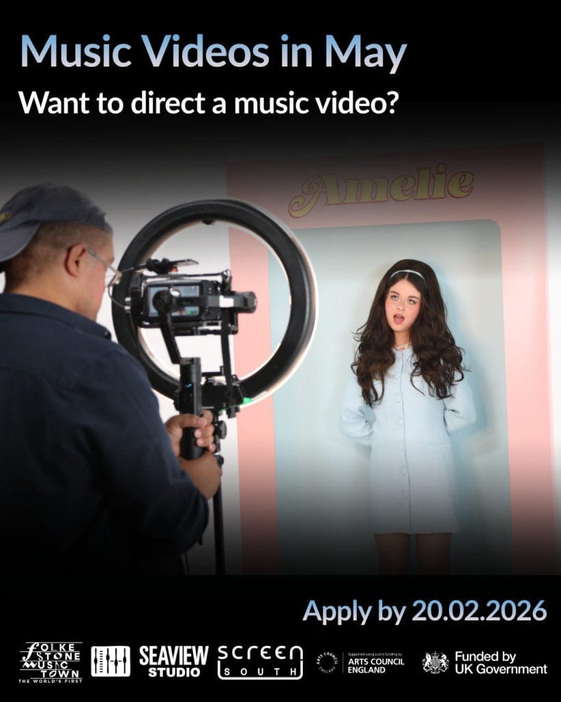 Musicians of Kent this is your moment! Screen South, Seaview Studio & Folkestone Music Town are calling for original tracks + video-ideas for our Music Videos in May 2026 project. Get ready to shoot a professional music video in Folkestone and premiere it in May 2026! Head to the website for full requirements & apply now.